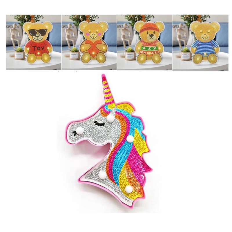 Diy Lukisan Diamond 5d Dengan Gambar Kartun Unicorn Dan Lampu Led Warna Warni - View Image